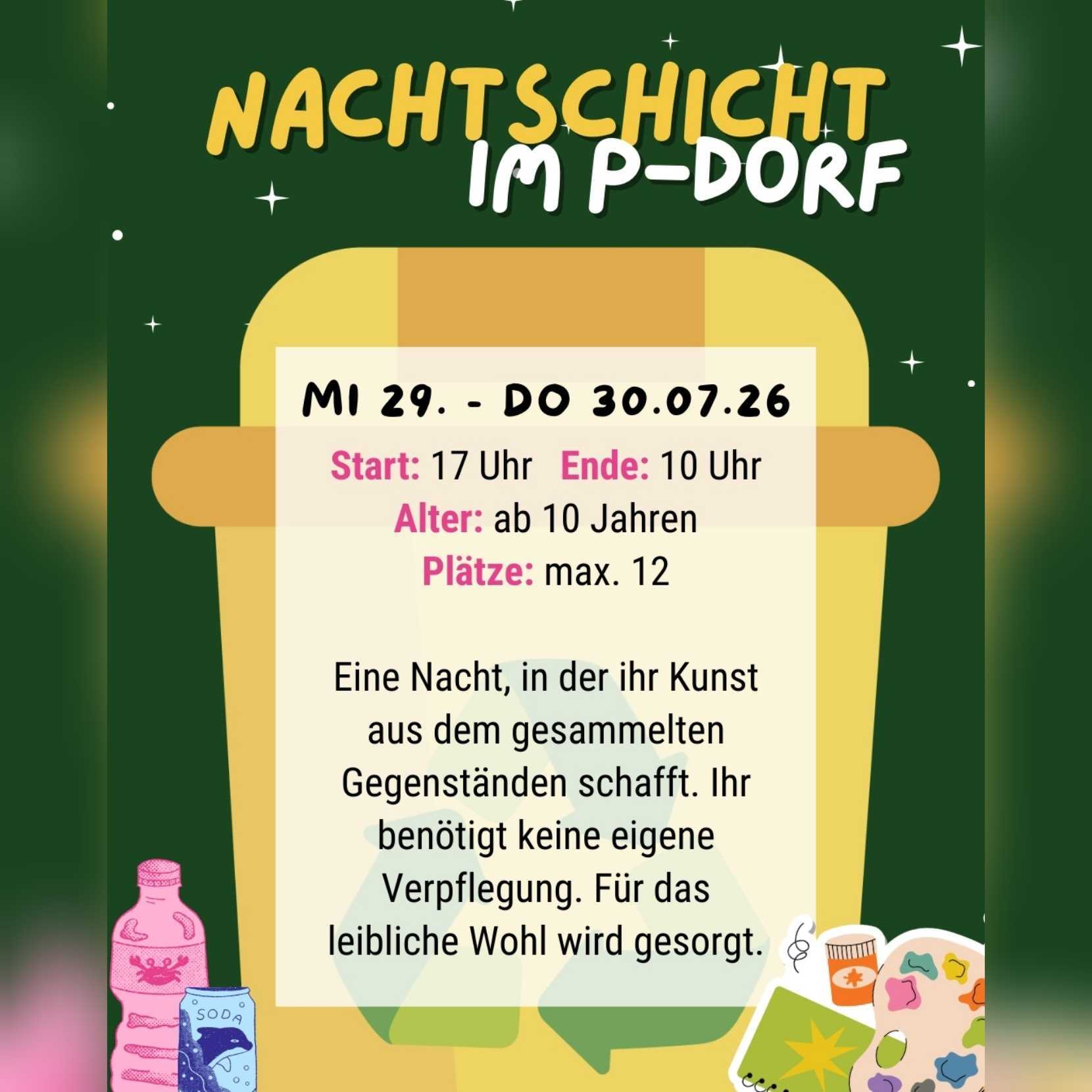 Home Events Nachtschicht im P-Dorf – Ihr verbringt eine Nacht im P-Dorf und gestaltet selbst Kunst aus Müll!