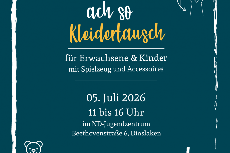 Der ach so Kleidertausch für Erwachsene UND Kinder im ND-Jugendzentrum Der nächste Kleidertausch für Kinder und Erwachsene ist am Horizont bereits zu sehen! Endlich! Denn wir haben keine Lust mehr auf „neu kaufen“. Denn alles was neugekauft wird, hat wiiieder einmal viele Ressourcen wie Wasser und Energie gekostet. Alles was wir „wegschmeißen“, weil wir es nicht mehr tragen ist, achtung, this is gonna blow your mind: NICHT WEG! Es gibt… Weiterlesen »ach so Kleidertausch für Erwachsene und Kinder
