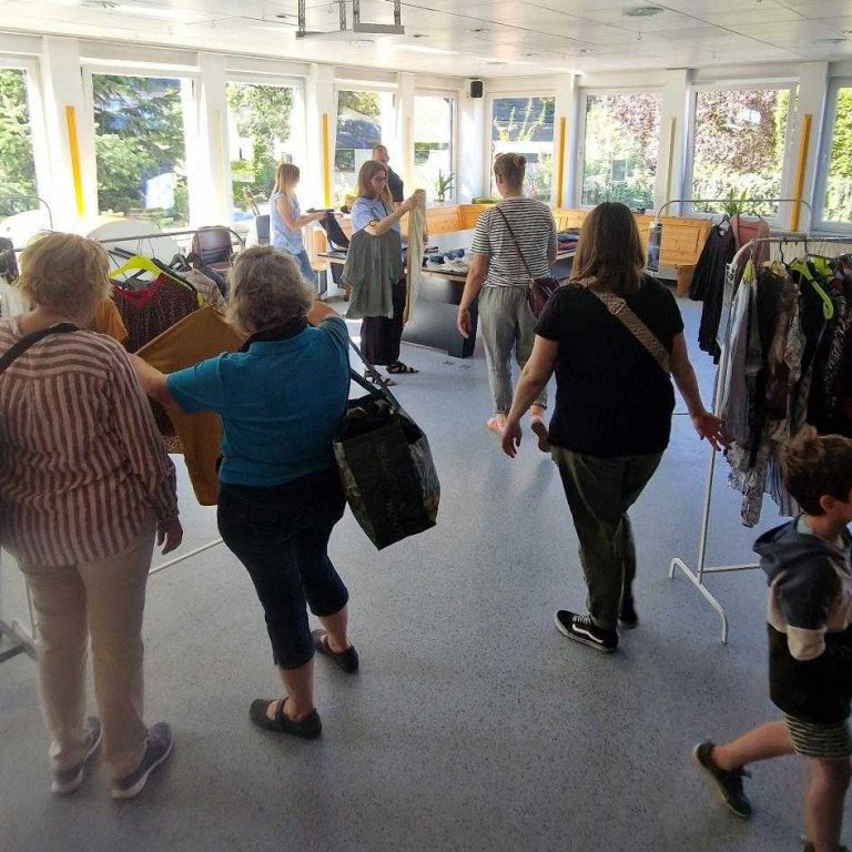 Einen Grundstock haben wir wieder für den nächsten Kleidertausch behalten. Die restlichen Sachen gingen an das Friedensdorf und Faktum Kinderwelt (Friedrich-Ebert-Straße). Wir sind dankbar, dass ihr unser Angebot so begeistert annehmt, und freuen uns schon auf die nächste Runde – mit euch, euren Schätzen und noch mehr Tauschglück.